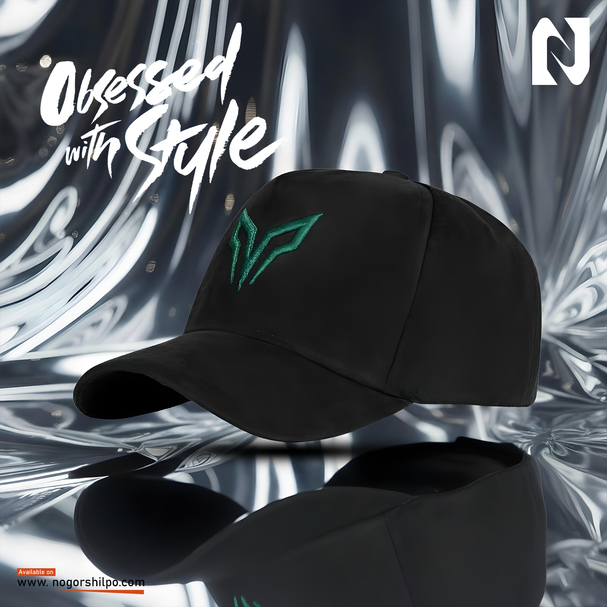 Black Baseball Hat with Green Accent - Minimalist Design
