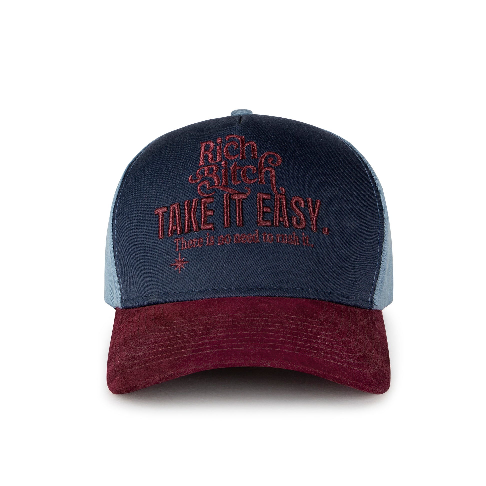 NAVY & MAROON WITH SUEDE BRIM & "TAKE IT EASY"